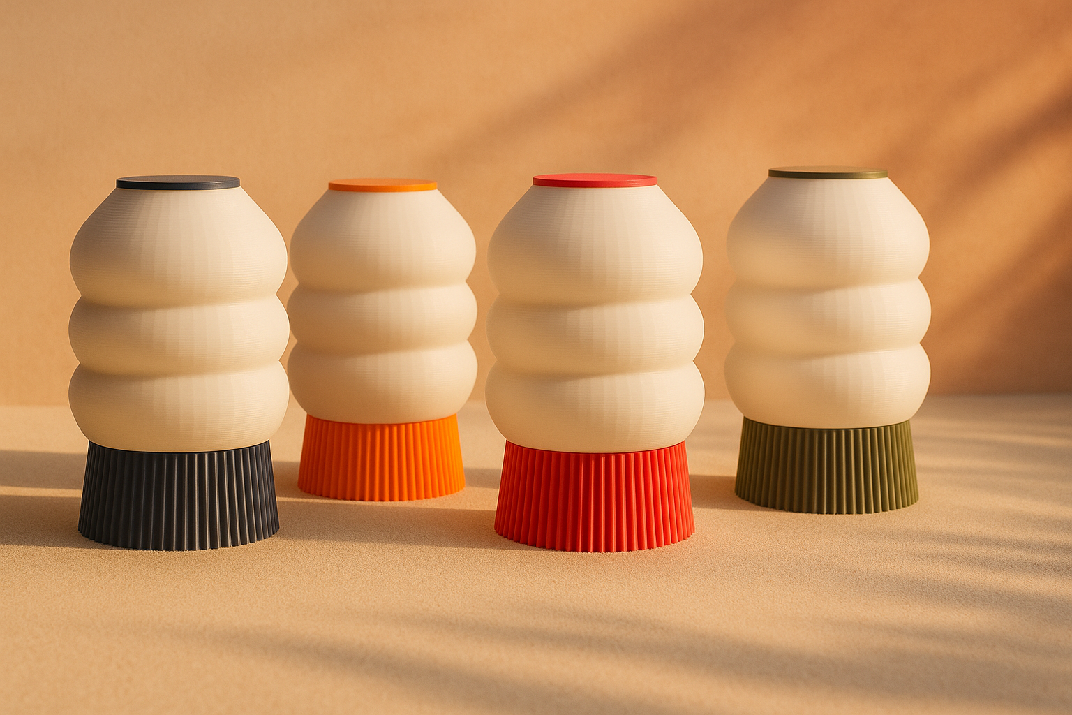 Ses courbes empilées et sa lumière diffuse créent une présence apaisante, à la fois sculpturale et chaleureuse. Chaque pièce est imprimée en 3D à la demande dans notre atelier parisien, à partir de PLA recyclé, un matériau durable issu de ressources naturelles.